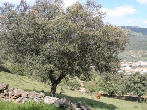 La formación vegetal autóctona es del tipo durilignosa con un bosque esclerofilo mediterráneo representado por la encina y el alcornoque, junto con otras especies como la higuera , el olivo y el matorral como la jara, aulaga , cantueso, esparraguera, etc.