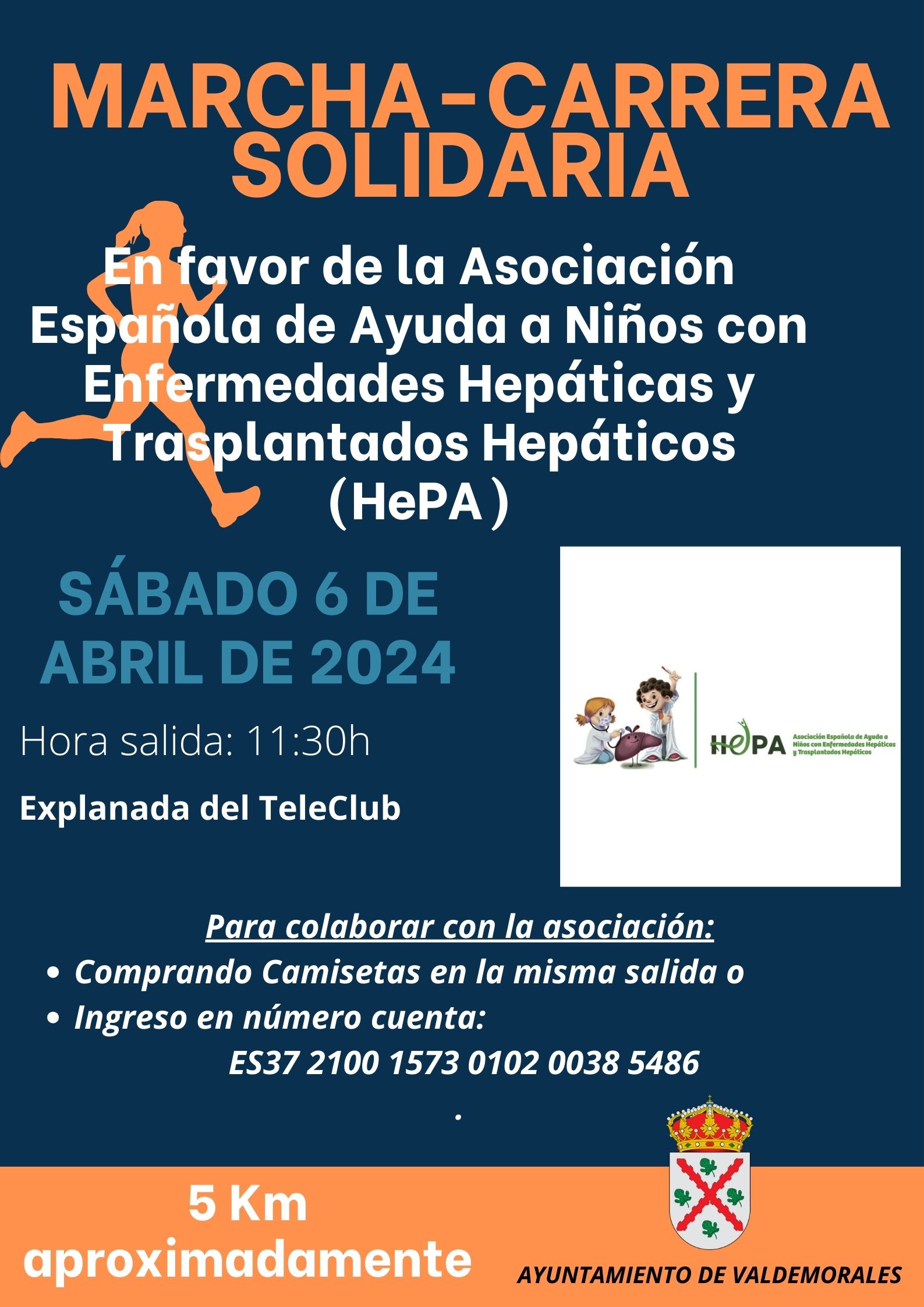 MARCHA-CARRERA SOLIDARIA 6 DE ABRIL 27 marzo 2024 EN FAVOR DE LA ASOCIACIÓN ESPAÑOLA DE AYUDA A NIÑOS CON ENFERMEDADES HEPÁTICAS Y TRASPLANTADOS HEPÁTICOS (HePA)